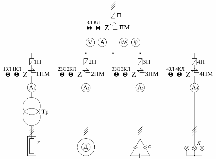 Электроизмерительные приборы позволяют измерять ток каждого электроприемника в отдельности и всей установки в целом.