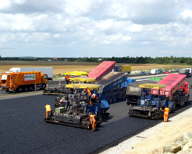 Diese modernen Strassendecken werden mit Strassenfertigern schichtenweise eingebaut, verdichtet und geglättet.