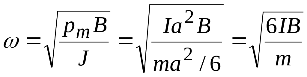 Из тонкой проволоки массой 4 г изготовлена квадратная рамка, свободно подвешенная на неупругой нити, по которой пропущен ток силой 8 А. Определить частоту малых колебаний рамки в магнитном поле с индукцией 0.02 Тл.
