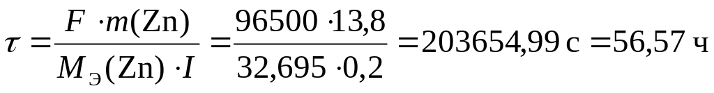 Используя уравнение (13), находим время работы элемента до полного расходования цинка