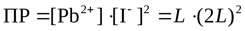 так как [Pb2+] = L, а [I−] = 2 L, где L – растворимость соли, моль/дм3.