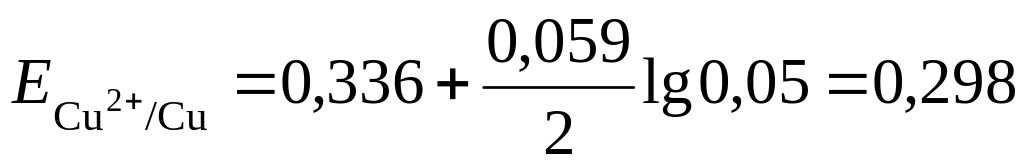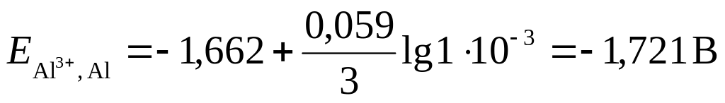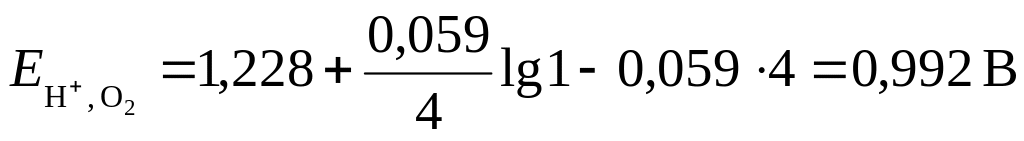 Определим потенциалы конкурирующих процессов по уравнению Нернста (формулы 4 и 6 соответственно)