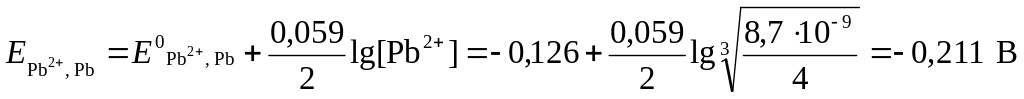 Подставив это выражение в уравнение Нернста для свинцового электрода, получаем