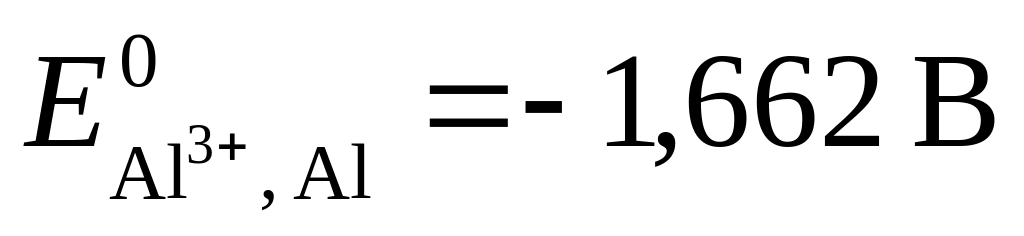 По значениям стандартных электродных потенциалов определяем, что алюминиевый электрод является анодом, на котором идет процесс окисления
