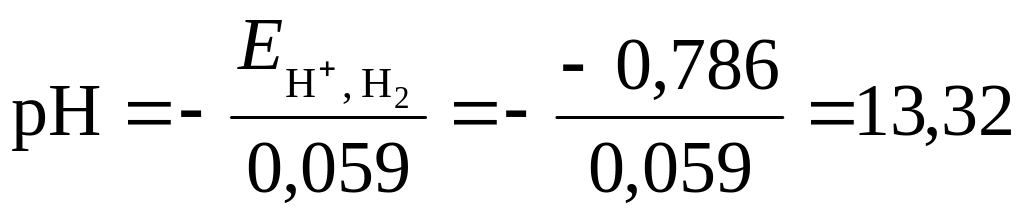 Пример 2. Определите концентрацию ионов ОН– в растворе, если потенциал водородного электрода, помещенного в данный раствор равен ‑0,786 В.