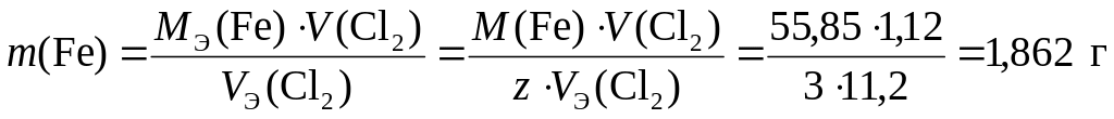 Для определения масс металлов, выделившихся на электродах, воспользуемся вторым законом Фарадея [формула (15)], зная, что эквивалентный объем хлора при н.у. равен 11,2 л/моль. Тогда в первом электролизере