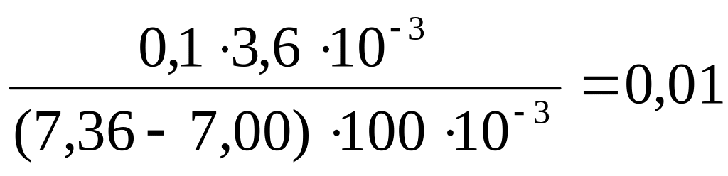 Пример 8. К 100 мл крови для понижения рН от 7,36 до 7,00 необходимо добавить 3,6 мл соляной кислоты с концентрацией 0,1 М. Чему равна буферная ёмкость крови по кислоте?