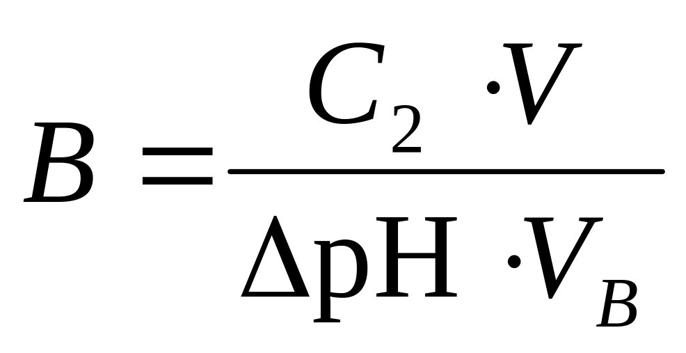где С2 – молярная концентрация сильной кислоты или основания; V – объём добавленного сильного электролита; VВ – объём буферного раствора; ΔpH – величина изменения рН раствора.