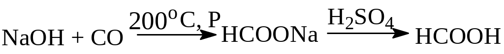4 Для отдельных кислот существуют специфические способы получения. Муравьиную кислоту получают нагреванием оксида углерода (II) с порошкообразным гидроксидом натрия:
