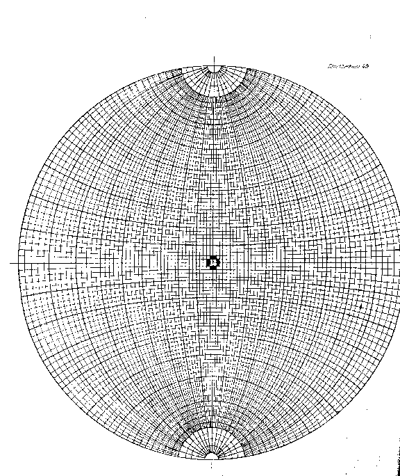 1. Большие круги сферы изображаются на плоскости дугами кругов, опирающимися на концы диаметра основного круга. Именно на таких дугах располагаются стереографические проекции плоскостей одной зоны.
