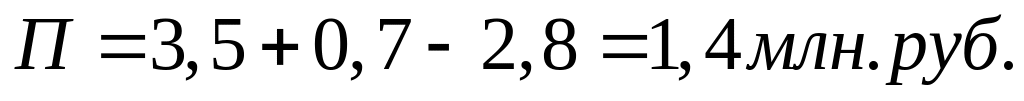 Определите фактическую прибыль от сдачи работ, если сметная стоимость строительно-монтажных работ – 3,5 млн. руб., компенсации, выплачиваемые заказчиком сверх сметной стоимости – 0,7 млн. руб. Фактическая себестоимость – 2,8 млн. руб.