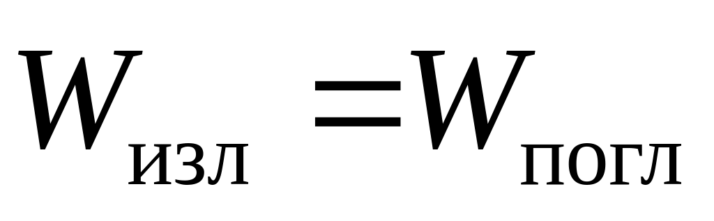 Рассмотрим теплоизолированную систему двух тел, находящихся в состоянии термодинамического равновесия. Температуры первого и второго тела такой системы одинаковы и не изменяются с течением времени, а их излучение – равновесное. Следовательно, для любого тела энергия Wизл, излучаемая в единицу времени с единицы площади поверхности, должна быть равна энергии Wпогл, поглощенной за то же время этим участком поверхности тела за счет падающего на него излучения: