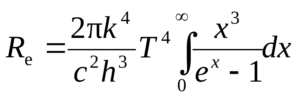 Таким образом, действительно формула Планка позволяет получить закон Стефана - Больцмана. Кроме того, подстановка числовых значений k, с и h дает для постоянной Стефана - Больцмана значение, хорошо согласующееся с экспериментальными данными.