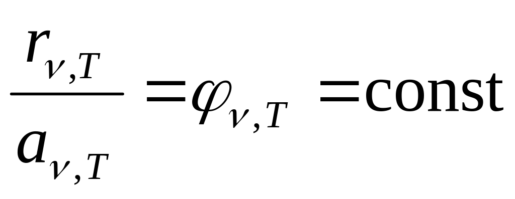 Отношение спектральной плотности энергетической светимости к поглощательной способности не зависит от природы тела; оно является для всех тел универсальной функцией частоты (длины волны) и температуры (закон Кирхгофа):