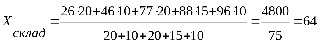 Координаты центра тяжести грузовых потоков (Xсклад,Yсклад), т.е. точки, в окрестностях которой может быть размещен распределительный склад, определяется по формулам: