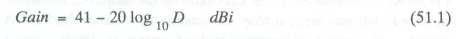 The basic high gain antenna is an offset fed reflector, generating an approximately circular beam. The beam edge gain of such an antenna is given approximately by Equation 51.1 where D is the half power beamwidth in degrees.