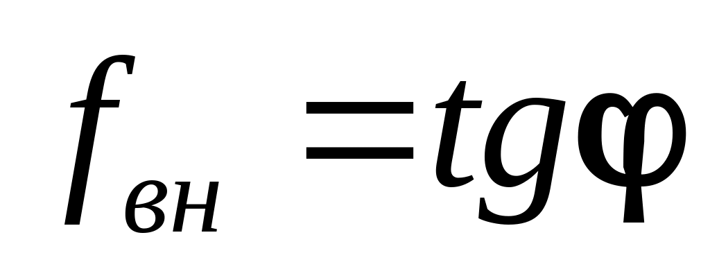 Коэффициент внутреннего трения fвн характеризует трение между частицами внутри слоя материала (прилож. I). для сыпучих материалов, у которых отсутствует сцепление между частицами, угол внутреннего трения равен углу естественного откоса φ, при этом