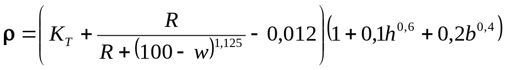 где KT - коэффициент, характеризующий вид торфа; для верхового KT = 0,01, для низинного KT = 0,04; R - степень разложения, %; w – относительная влажность торфа, %; h - средняя высота падения торфа при засыпке, м; b - толщина засыпаемого слоя, м.