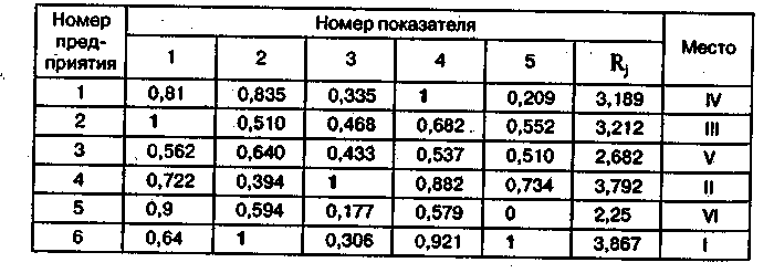 Этап 4. Полученные рейтинговые оценки (Rj) размещаются по ранжиру, после чего определяется рейтинг каждого предприятия. Первое место занимает предприятие, которому соответствует наибольшая сумма, второе место - предприятие, имеющее следующий результат, и т.д.
