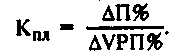 Уровень производственного левериджа исчисляется отношением темпов прироста прибыли от основной деятельности П% (до выплаты налогов) к темпам прироста объема продаж в натуральном или стоимостном выражении (VРП%):