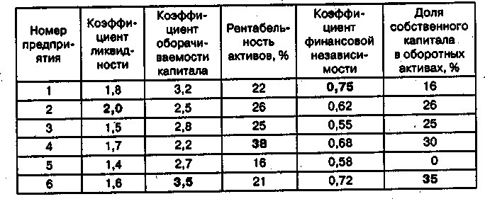 Этап 1.Обосновывается система показателей, с помощью которых будут оцениваться результаты хозяйственной деятельности предприятий, собираются данные по этим показателям и формируется матрица исходных данных (табл. 15.30). Исходные данные могут быть представлены в виде моментных показателей, отражающих состояние предприятия на определенную дату, и темповых показателей, характеризующих динамику деятельности предприятия и представленных в виде коэффициентов роста. Возможно изучение одновременно и моментных, и темповых показателей.