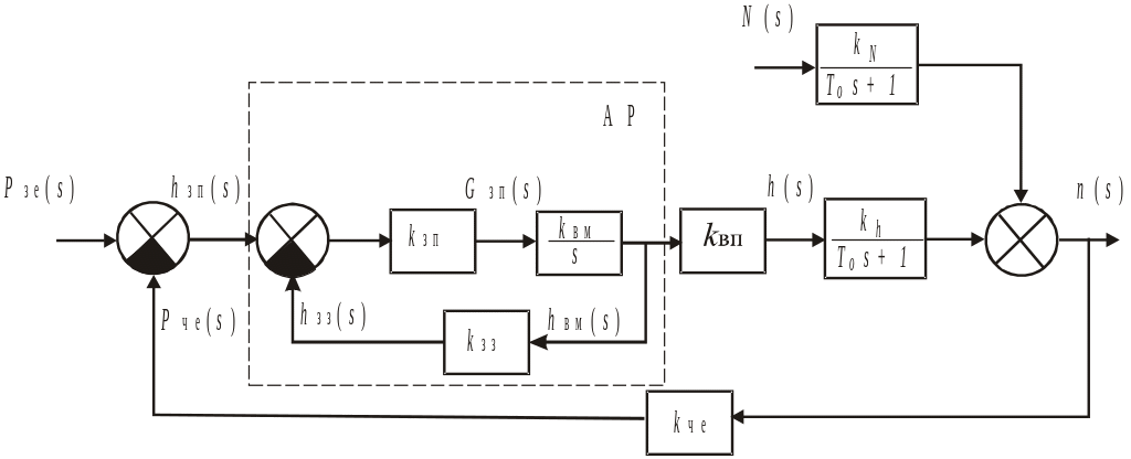 hвм , hзз - відносні переміщення поршня ВМ і важеля на виході ПЗЗ (гільзи золотникового підсилювача).