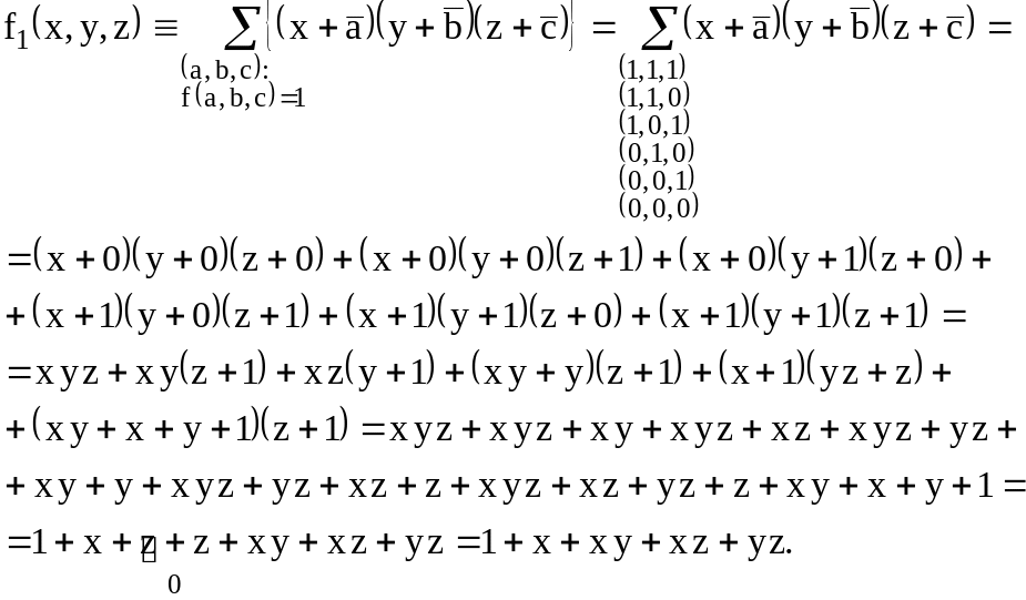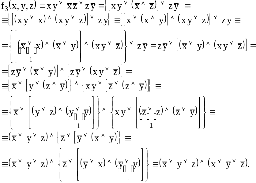 2) путем представления заданных формул , и в виде полиномов Жегалкина, формируемых двояко: а) на основе формулы Жегалкина; б) на основе метода неопределённых коэффициентов.