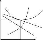 (За довгостроковий період криві середніх та граничних витрат можуть також зміститися. Для спрощення ми припускаємо, що витрати незмінні). Крива тривалого попиту буде дотичною до кривої середніх витрат фірми. Коли крива попиту є дотичною до кривої средних витрат при обсязі виробництва , що максимизирует прибуток, як показано , фірма просто покриває свої витрати, тобто беззбиткова.