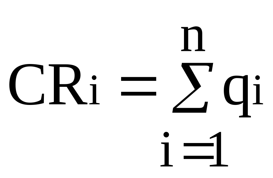 1. Індекс концентрації визначається як сума ринкових часток найбільших виробників (найчастіше трьох) за формулою 2.1: