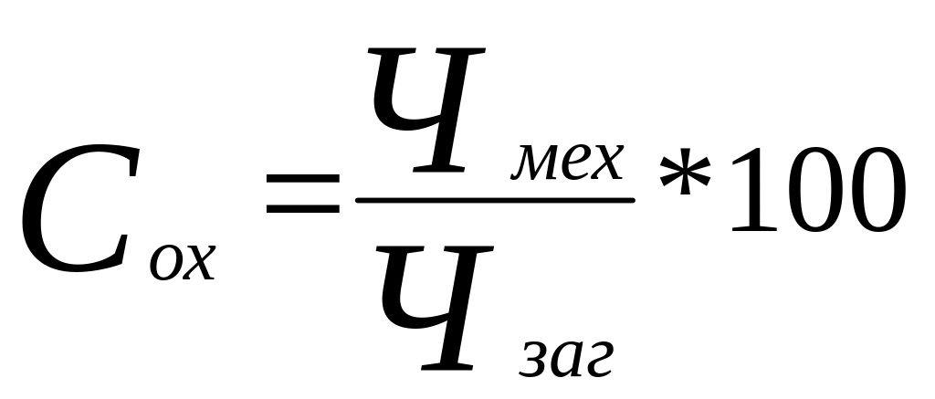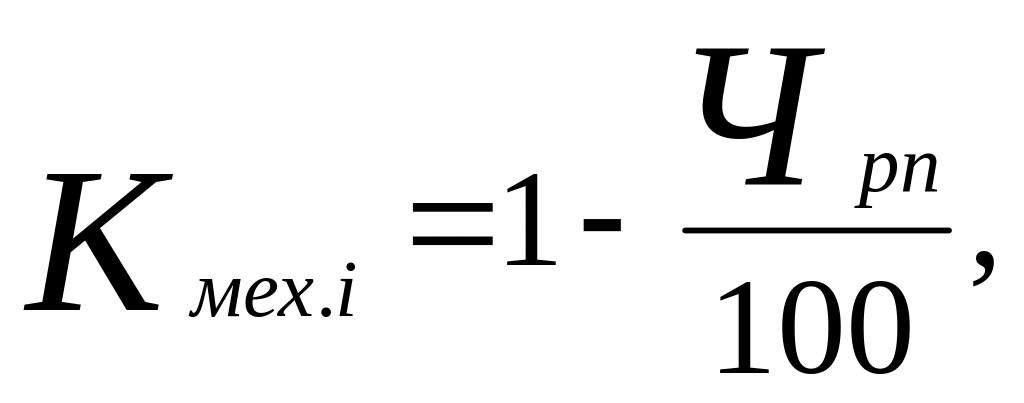 1. Рівень механізації виробництва, який розраховується як відношення обсягу продукції (в натуральних одиницях виміру), що виробляється за допомогою машин і механізмів, до загального обсягу виготовленої продукції.