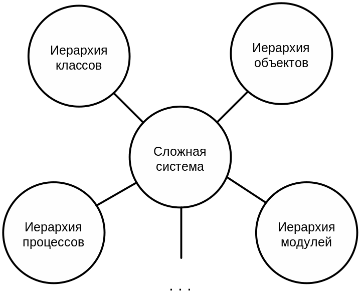 Тот факт, что многие сложные системы имеют почти разложимую иерархическую структуру, является главным фактором, позволяющим нам понять, описать и даже «увидеть» такие системы и их части. В самом деле, скорее всего, мы можем понять лишь те системы, которые имеют иерархическую структуру. Важно осознать, что архитектура сложных систем складывается и из компонентов, и из иерархических отношений этих компонентов. Все системы имеют подсистемы, и все системы являются частями более крупных систем. Особенности системы обусловлены отношениями между ее частями, а не частями как таковыми.