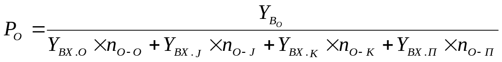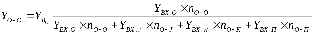 Використовуючи формулу (3.26), обчислюємо розподіл вихідного навантаження від ОПС до станцій мережі (YO-O, YO-J, YO-K). Внутрішньостанційне навантаження YO-O дорівнює: