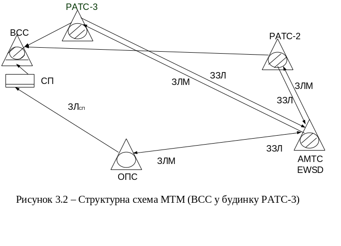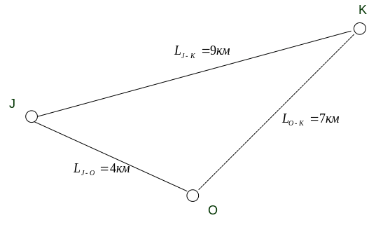 Відстані між РАТС визначаються методом трикутника в масштабі 1см= = 1 км (рис.3.1).