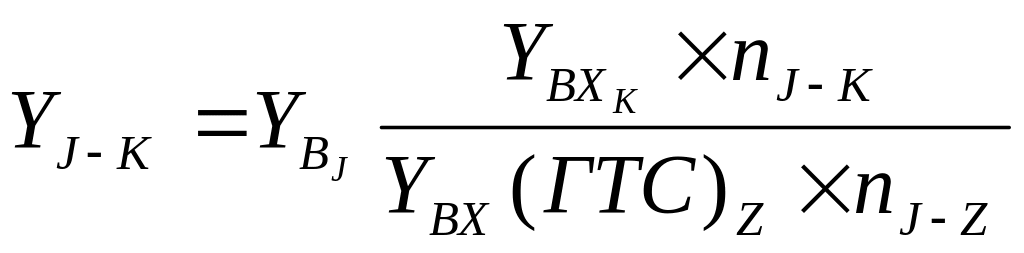 YВХ (ГТС)Z - сума вхідних на всі РАТС, ОПС, ПС ГТС навантажень, нормована коефіцієнтами тяжіння відносно РАТС-J, (nJ-Z);