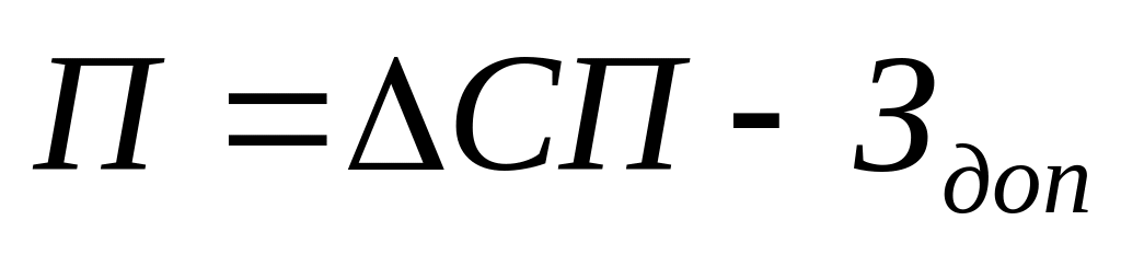 Э=(СФ-СПр)W+П,