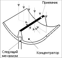 Солнечные электростанции модульного типа состоят из большого числа включаемых параллельно или последовательно однотипных модулей, представляющих собой концентраторы параболоцилиндрической формы, в трубках которых испаряется и перегревается рабочее тело, а образующийся пар направляется затем в турбину.