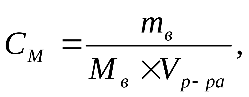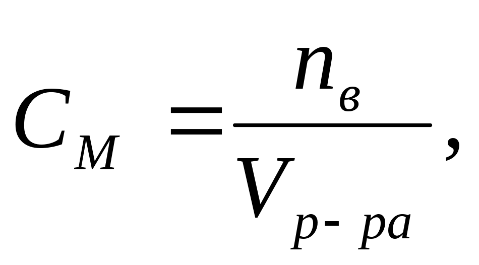 Молярная концентрация - это отношение количества (числа молей) вещества к объему раствора, выраженному в литрах: