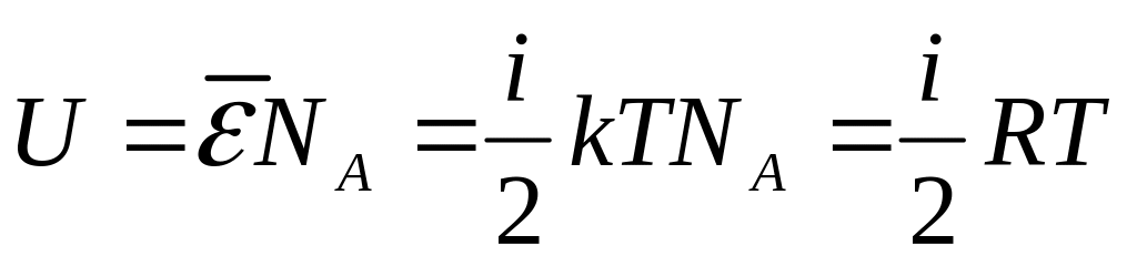 Для идеального газа потенциальная энергия взаимодействия молекул считается равной нулю, и внутренняя энергия идеального газа представляет собой только кинетическую энергию теплового движения. Поэтому внутренняя энергия одного моля идеального газа равна:
