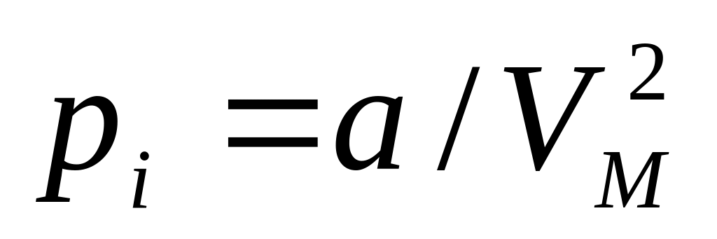Для получения уравнения состояния реального газа необходимо учесть собственный объем молекул и энергию взаимодействия молекул на расстоянии. Наличие собственного объема молекул приводит к уменьшению объема, предоставленного молекулам, на некоторую величину. Силы притяжения между молекулами газа вызывают уменьшение давления молекул газа на стенки сосуда на некоторую величину рi.