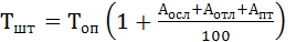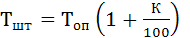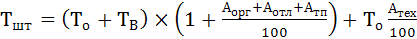 где Топ – время оперативной работы; К – сумма времени на обслуживание рабочего места, отдых и личные надобности, выраженная в процентах от оперативного времени.