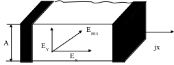Известно, что в результате разделения зарядов под действием силы Лоренца, появляется электрическое поле EH перпендикулярное направлению магнитного поля. Направление этого поля, которое называется полем Холла, зависит от знака носителей заряда. Вектор суммарного электрического поля E ' = E + EH повернут на некоторый угол относительно направления j.