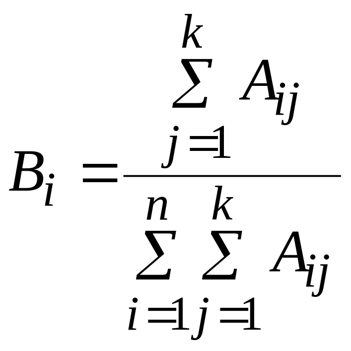 При учете предпочтений по каждому объекту исследования всеми экспертами коэффициенты весомости объектов ранжирования могут рассчитываться по другой формуле: