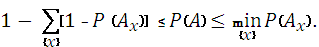 Это выражение означает, что вероятность достижения стратегической цели системы меньше или равна минимальному значению вероятности выполнения тактической цели по -качеству и больше или равна сумме вероятностей невыполнения тактических целей по -качествам, вычитаемой из единицы.