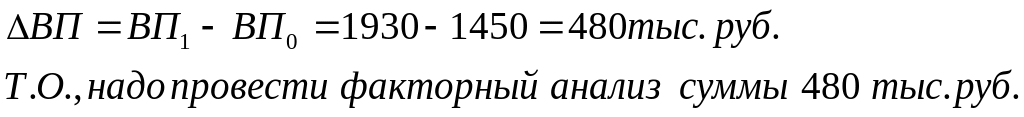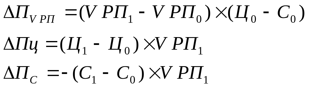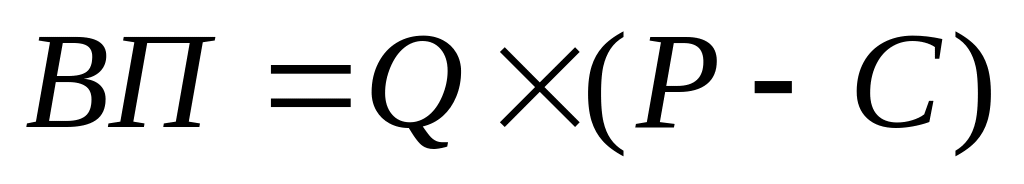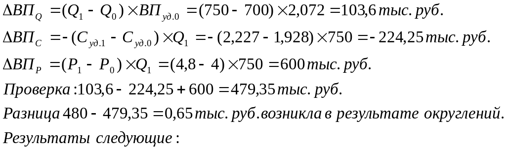 ВПуд – прибыль (валовая) на 1 ед. продукции; Суд – себестоимость единицы продукции; Р – цена 1 ед. продукции; Q - физический объем реализованной продукции, ед.; ΔВП (ф) – влияние фактора «Ф» на изменение валовой прибыли.