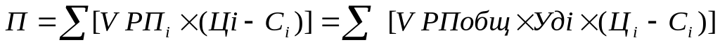 Факторная модель прибыли от реализации отдельных видов продукции имеет вид: