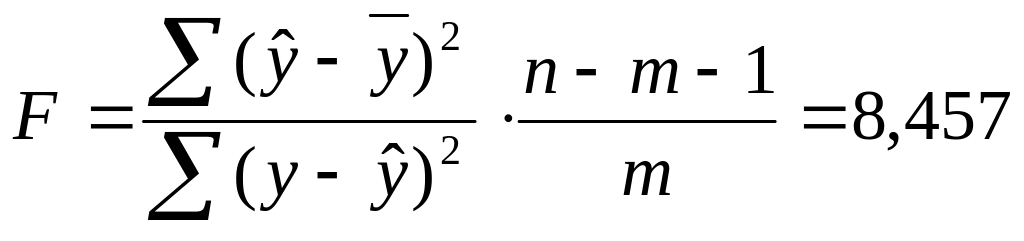 2.7 Проверим гипотезу о значимости уравнения с помощью критерия Фишера: