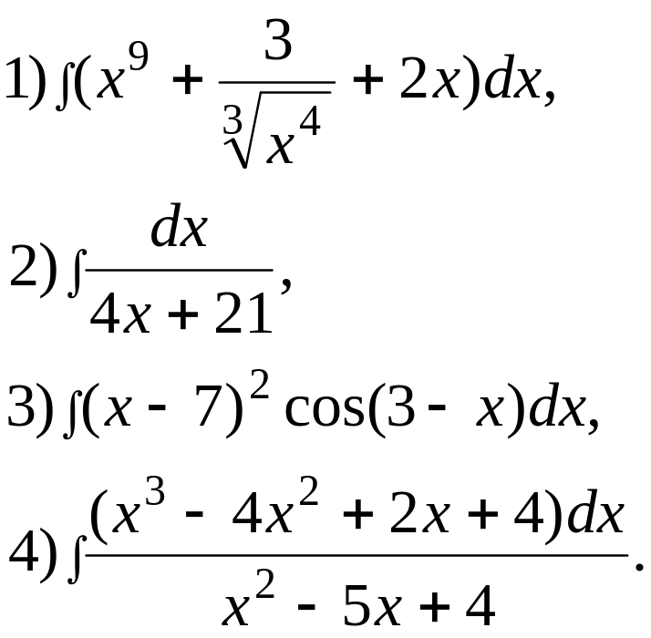 Задача № 12. Найдите неопределенный интеграл: