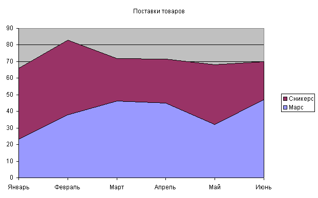 При создании диаграммы типа "Поверхность" должно быть два столбца (строки) данных, не считая столбца (строки) подписей категорий.