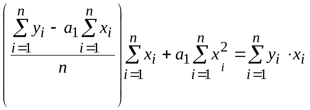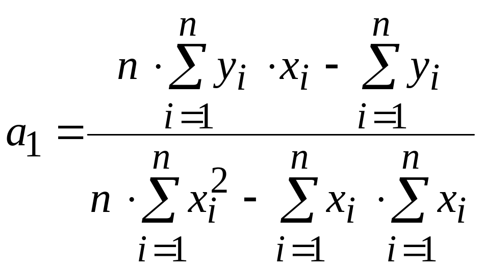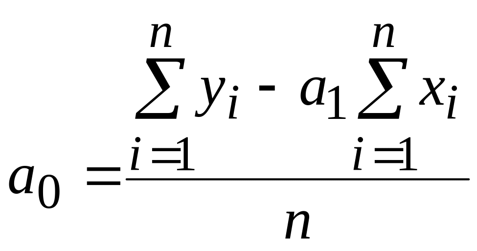 Для определения значений а0 и а1 следует решить систему двух уравнений с двумя неизвестными. Выразим а0 из первого уравнения и подставим его выражение во второе уравнение, которое решим относительно а1.