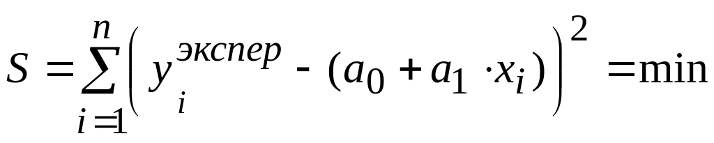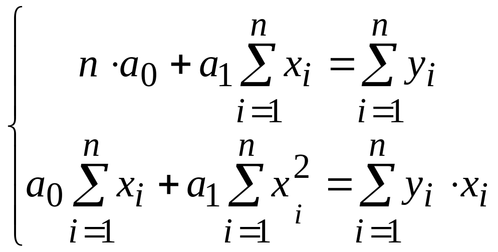 Функция S - функция двух независимых переменных а0 и а1. Для определения экстремума функции нескольких переменных необходимо обращение в нуль ее частных производных первого порядка, что приводит к уравнениям:
